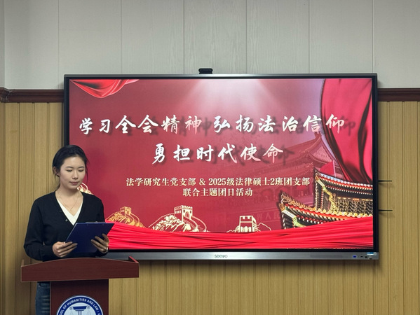 12月16日下午,永利yl23411集团法学专业研究生党支部与研究生法律专业2025级2班团支部在文理楼302联合举办“学习全会精神,弘扬法治信仰,勇担时代使命”主题团日活动,围绕“中国共产党第二十届中央委员会第四次全体会议”以及“国家宪法日”“国家公祭日”两个全国性纪念日,通过“思想引领”“宪法宣讲”“历史镜鉴”“互动深化”四个模块,组织支部成员进行深入学习和讨论。活动由研究生法律专业2025级2班团支部书记王星越主持,辅导员于露及法学专业研究生党支部、研究生法律专业2025级2班团支部成员参加。