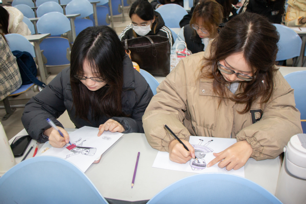 在随后的互动体验环节,支部成员们分为三组,依次参与了民族知识竞答、剪纸艺术体验与民族服饰涂色活动。剪纸展区中,支部成员们在指导下尝试剪制各民族象征图案;涂色区里,大家用心调配色彩,绘制出独具特色的民族服饰线稿。活动现场气氛热烈,成员们在动手实践中真切感受到中华民族文化的多样性与创造力。