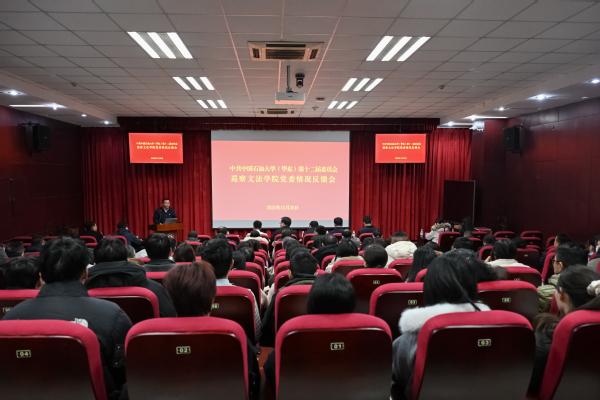 谭树成代表学院党委作表态发言。他表示,巡察组反馈的意见实事求是、直指症结,学院党委完全赞同、诚恳接受、照单全收。学院党委将把巡察整改作为当前最重要的政治任务,坚决扛起整改主体责任。一是提高站位,全盘认领问题清单,深刻反思根源,统一思想行动。二是压实责任,全面落实整改要求,迅速制定方案,建立清单台账,实行销号管理,确保问题整改到位。三是强化运用,全力推动学院发展,坚持把整改与学习贯彻党的二十大精神、落实学校党代会部署、总结“十四五”和谋划“十五五”相结合,以整改促党建、促改革、促作风,切实将巡察成果转化为学院高质量发展的实际成效。学院党委有决心、有信心在学校党委坚强领导下,扎实完成整改任务,为学校中国特色能源领域世界一流大学建设贡献力量。