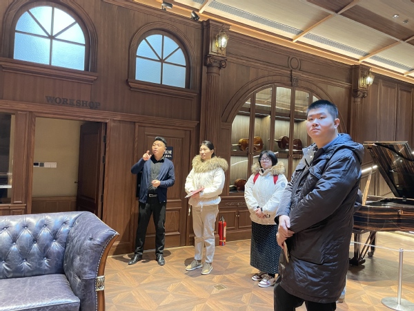 在青岛臻传音乐的访问中,青岛臻传音乐、德国贝希斯坦钢琴青岛中心副总经理刘坤、师训营运营总监、钢琴教师张宇对来访师生表示诚挚欢迎。刘坤副总经理陪同师生参观了公司乐器区、舞台及演出策划办公区等核心工作场所,并详细介绍了公司的发展历程、业务布局及品牌文化理念。通过实地观摩与讲解,师生对音乐产业的运作机制和艺术管理实践有了更加直观的感知。刘坤副总经理进一步介绍了公司在音乐创作、版权运营、文化活动策划等方面的业务特色,并结合行业趋势,系统分享了企业的人才需求标准、青年员工培养路径及职业成长通道。他还结合自身工作经历,讲述了从校园到行业一线的心得体会,鼓励同学们既要注重专业积累,也要勇于创新实践,为未来职业发展打下坚实基础。