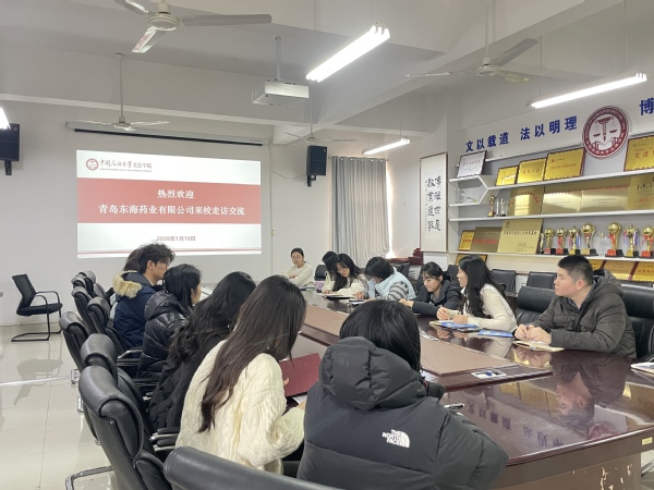 1月16日,青岛东海药业有限公司代表一行来我院进行走访交流。永利yl23411集团辅导员于露、各年级辅导员及相关专业本科生、研究生代表积极参与。双方围绕企业人才需求、学生实习实践基地建设及校企协同育人等议题展开深入沟通。