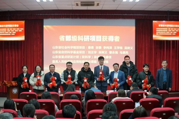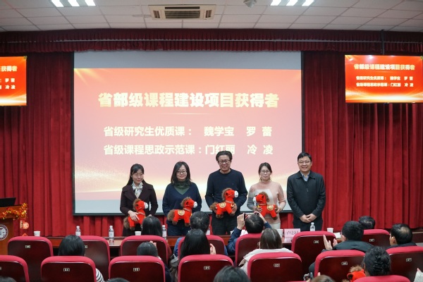 会议对2025年度在科研、教学、学工等方面取得突出成绩的先进集体与个人进行了表彰。与会嘉宾分别为获得国家社科基金、省部级项目与成果、各类课程建设与教学奖项、咨政报告及学生工作荣誉的教师颁奖,激励全体师生以先进为榜样,见贤思齐,再创佳绩。
