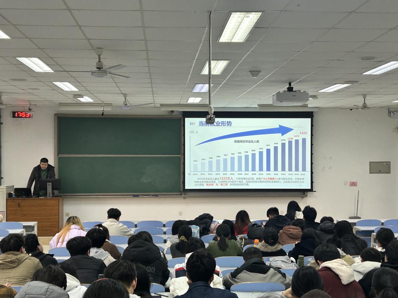 会上,刘正宇立足新学期学生发展需求,围绕就业形势认知、职场能力对标、升学就业规划、筑牢安全根基四个维度开展系统讲解,为学生明晰发展路径、夯实毕业根基提供全面指引。他指出,全体学生要清醒把握当前就业市场整体态势,客观看待就业总量压力、市场结构矛盾及学历求职“内卷”现状,主动抢抓数字化、智能化发展带来的新兴职业机遇,辩证看待就业挑战与发展契机。他着重强调,学生需精准对标职场用人要求,专业素质是用人单位核心考核指标,面试重点考查学习、抗压、沟通三大能力,优质企业更关注价值观、内驱力等职场 “软实力”;要求学生结合自身兴趣、能力与市场需求锚定发展方向、做好精准准备,树立“先就业再择业”的理性就业观念。最后,他明确校园成长底线,强调所有职业规划与就业准备,均须以顺利毕业、严守校规校纪、保障自身安全与身心健康为根本前提。