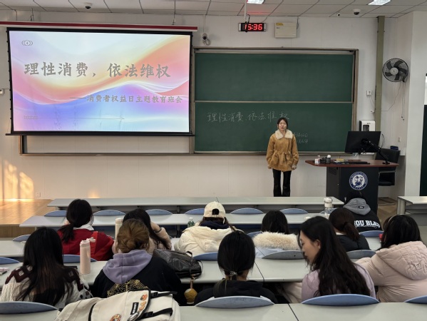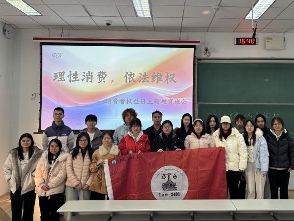 为迎接第43个“3·15”国际消费者权益日,增强学生们的消费维权意识与法治素养,3月15日,法学2401班在西廊201教室举办“理性消费,依法维权”消费者权益日主题教育班会。本次班会由班长乔琪主持,班级全体同学积极参与。
