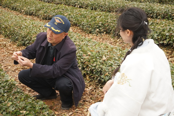 午后,基地主任张栋为支部成员们带来一堂别开生面的田间思政课。他以海青茶农坚守劳作的故事为引,从历史传承讲到当代担当:“《诗经》‘采采芣苢’的集体劳作之美,在你们的采茶实践中得以印证。劳动是技能的锤炼,更是价值观的塑造——它教会我们敬畏传统、扎根土地,在躬身实践中实现个人成长。”张栋还通过讲述海青镇茶农数十年坚守劳作的故事,激励支部成员们将“脚下沾泥土,心中有担当”的精神融入学业与生活。