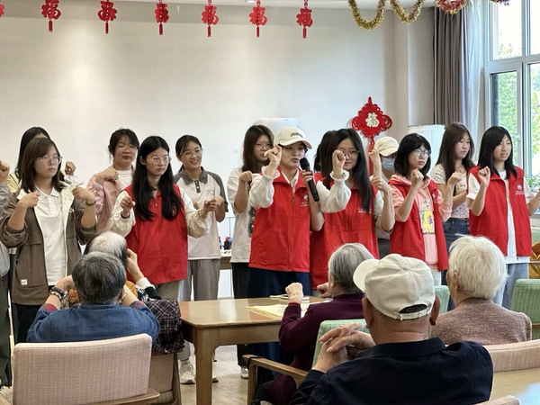 音乐响起,团支部成员和老人们一起唱起了经典老歌《学习雷锋》。“学习雷锋好榜样,忠于革命忠于党……”熟悉的旋律在空气中回荡,老人们轻轻拍着手,跟着节奏哼唱,脸上洋溢着幸福的笑容。接着,大家又合唱了《东方红》,激昂的歌声让整个照护之家都充满了活力。汉语2401团支书吴明涵表示:“看到老人们这么开心,我们感到非常满足。尊老爱老是中华民族的传统美德,我们希望通过这样的活动,让更多的人关注老年人,关爱他们的生活。”