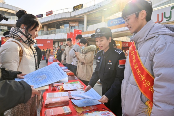 宣讲团成员向市民介绍国家宪法日 张悦摄