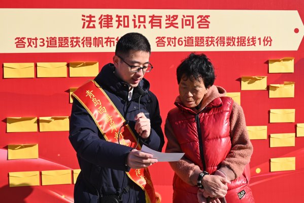 活动现场,宣讲团成员面向广大民众发放法律读本及宣传资料,普及宪法知识。为了让法律条文变得通俗易懂,成员结合前期调研梳理的市民高频法律需求,精心准备了一系列贴近生活的典型案例,涉及劳动合同签订、侵权责任认定、财产继承、消费者权益等常见法律情景。与此同时,法律知识有奖问答环节同步展开,将现场气氛推向高潮。普法志愿者精心设计了90道问答题,题目形式多样,内容涵盖宪法基本常识、民法典核心条款、未成年人保护法、老年人权益保障法等多个与群众日常生活息息相关的领域。难度由浅入深,兼顾不同年龄段和知识背景的市民,参与者答对三道及以上题目可获得礼品一份。普法志愿者以提问的方式展现各类丰富的法律知识问题,吸引众多市民前来参加,现场欢声笑语不断。