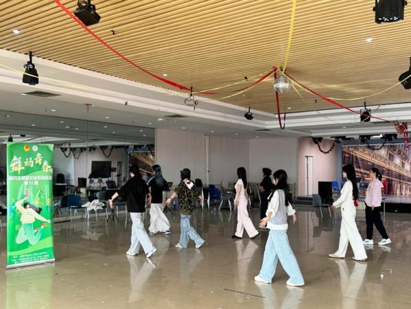 活动伊始,工作人员有序组织签到,主持人简要介绍活动流程、舞蹈特色及积分兑奖规则,迅速调动起现场同学的参与热情。在舞蹈学习环节,专业教练带领大家完成热身运动后,开展舞蹈教学,教练动作标准、指导细致,同学们紧跟节奏、认真练习,在活力满满的律动中舒展身体。