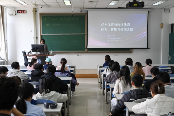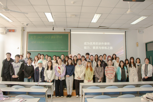 3月26日,法学2403、2503团支部联合开展“涉外法治视野下的‘她’力量”主题团日活动,邀请北京德恒(青岛)律师事务所合伙人、涉外业务专委会主任刘玙分享“成为优秀的涉外律师:能力、素质与修炼之路”,法学2403、2503团支部全体成员参与。