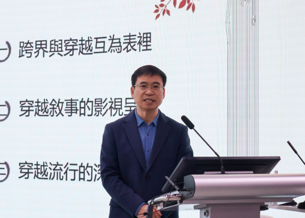 讲座伊始,聂教授指出,善用跨界、穿越手法是东亚文学之间的共性并阐述了穿越与跨界互为表里的特性。他指出,“穿越”是指存在于某一特定时空的任务来到现实中不可能抵达的另一时空的表现手法,既表现情感与身份的交融,也能勾连起历史、现实与未来。