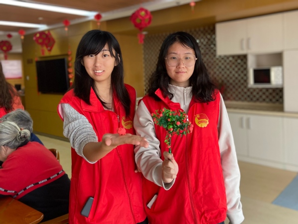 活动伊始,成员与老人结对,共同完成茱萸的手工制作。学生耐心协助老人查看步骤、调整装饰,现场满是欢声笑语,一个个精致的茱萸不仅承载着传统节日的寓意,更拉近了青年与老人的距离。